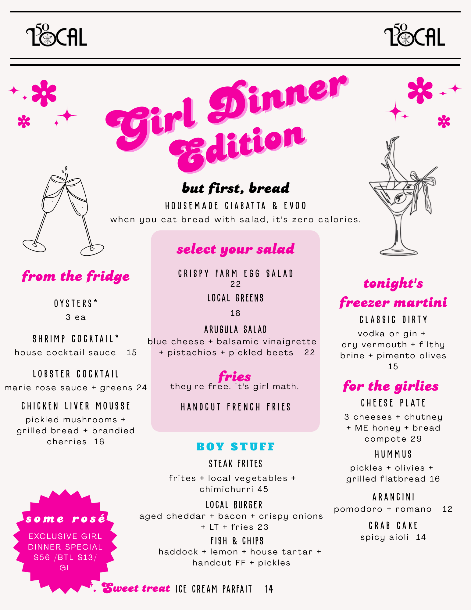 Our Wednesday Girl Dinner menu is built for mixing, matching, sharing, and lingering.